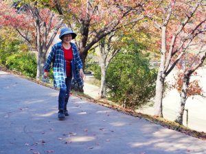 <外で歩行器・杖を使って歩く>